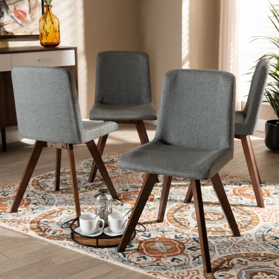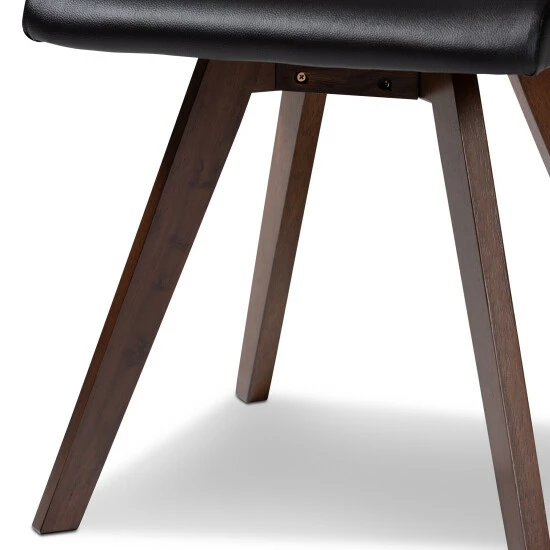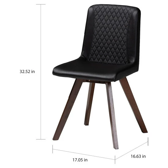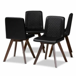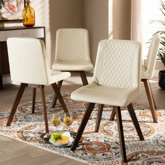 Upholstered in a sleek faux leather in your choice of three versatile, elegant hues, this lovely foursome features a wide, curved seat for the utmost comfort during long dinners, as quilt stitching and piping lend a touch of texture and elegance. Spruce up your dining space with the chic design of this handsome ensemble.