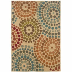 Refresh your home’s decor with this machine-woven Yammoune area rug from Copper Grove. The rectangular rug is made from polypropylene yarns that entwine in an overlapping, dotted circle pattern. The rug is rendered in Beige, Cream, green, red, blue, and orange colors, completing the contemporary style of this stain resistant rug.