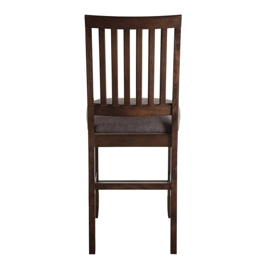 A modern take on farmhouse style, this classic slat back counter chair is finished in rich espresso with a polyester grey tweed seat that will blend beautifully with most styles and decors. The 24-inch counter seat height works perfectly with your counter dining set or pulled up to your kitchen counter or bar. Four sided stretchers provide strength and a comfortable foot rest.