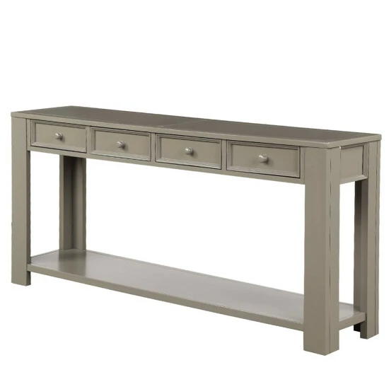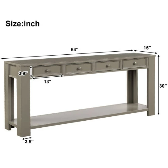Fitted with an expansive surface, drawers and spacious bottom shelf, this table can display your favorite decor or home necessities in one place. Organize small home accessories while keeping them within easy reach with the four cube center storage drawers and the larger side cabinets, all accented with classic molding along the inner perimeter for added dimension. Crafted with high-grade Acacia Magium solid wood, natural wood grain is featured throughout and is coated in quality wear-resistant lacquer, keeping both durability and style in mind. The multi-functional desk can be used as console table, sofa table, hall table or entryway table in the living room, bedroom, office.