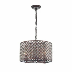 Enhance the vibe in your rustic-themed dining room or living room with this Yenbai copper chandelier. Constructed with a durable and strong solid metal frame, this sturdy chandelier has a rustic copper finish for a modern look with a farmhouse feel. Crystal accents throughout this chandelier’s drum shade glisten and shine in the lamp’s brilliant light while evenly diffusing it to reduce unpleasant glare. This chandelier is equipped with four light sockets ready to accept any standard E12 bulb and is hardwired for reliable functionality.Description:Transform the look of your home decor with this Copper Grove Yenbai 4-light Rustic Copper Chandelier. Ideal for great room and dining room placement, this four-light chandelier features a drum-shaped shade with twisted metal framing that enhances refractions from embedded crystals for a gleaming effect.