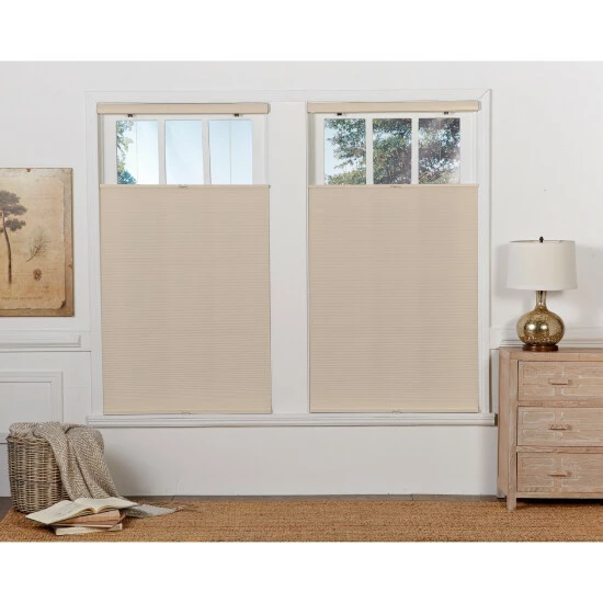 The cordless light filtering top down bottom up cellular shade is a contemporary choice when you want to add natural outdoor light from either the top or bottom of the window, while at the same time maintaining privacy. This light-filtering window shade is easy to adjust by simply holding the bottom rail and then gently raising or lowering the shade by hand. Made from a non-woven polyester.