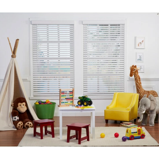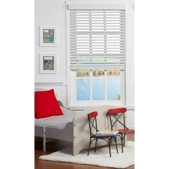 The two-inch cordless faux wood blind is made with an innovative cordless design and offer various features to suit any living space. Complement your window treatment with a colored-matched crown valance for a modern look and a touch of elegance. This blind is designed to provide a balance of filtered light and privacy. Our design is easy to operate with minimum effort. To adjust, simply hold the bottom rail and lift or pull down to the desired height.