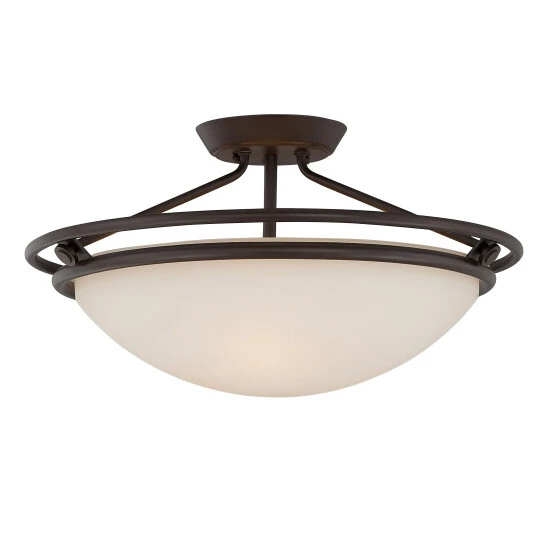 Add modern feel to your decor with this Quoizel semi-flush mount light fixture. This light features a western bronze finish coupled with a frosted shade that slightly diffuses the light for the perfect amount of lighting.