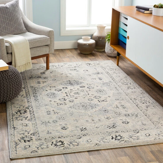 Showing off an Oriental pattern in beautiful grey tones that fit well with nearly any decor. Gorgeous and soft, this rug features a comfortable medium pile with subtle carved details and minimal shedding. Great for high-traffic areas, this piece is tough and stylish in one.